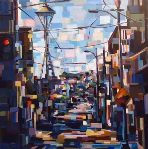 "Sixth and Pike", Acrylic on Linen, 36x36 inches, Dec 2014 SOLD