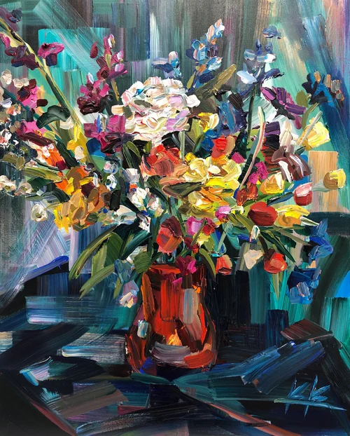 Flowers a Rainy Day, 30x24, Acrylic, Feb 2019 SOLD