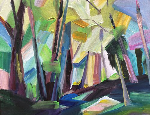 Creek Glow, 48x36, acrylic, 2025, SOLD