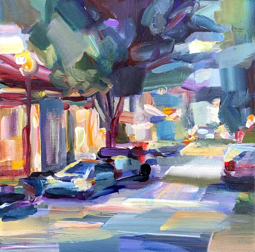 Neighborhood Evening, 24x24, Acrylic, July 2018 SOLD