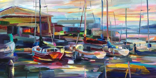 Morning Boat Memories, 24x24, acrylic April 2018 SOLD